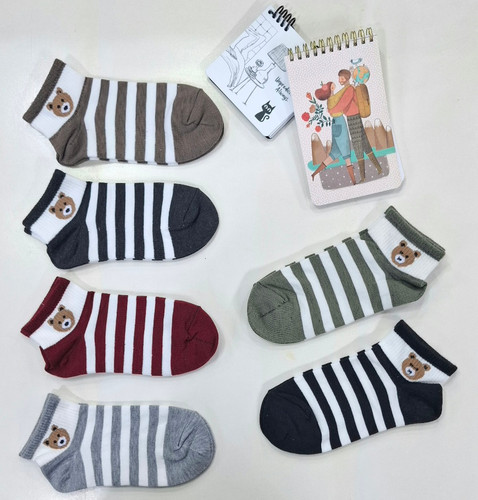 جوراب مچی زنانه طرح خرس خط دار جین کامل (۱۲عدد)
